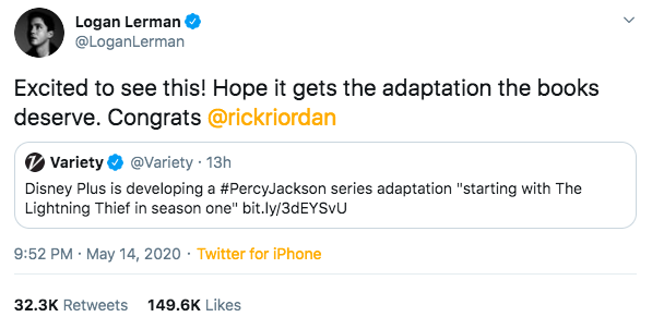 Fandom On Twitter Og Percy Jackson Actor Logan Lerman Throws His Support Behind The New Disney Series Hope It Gets The Adaptation The Books Deserve Https T Co E2kefkvor9 Twitter